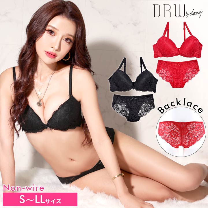 【1000円OFFクーポン対象&送料無料】 ブラジャー ショーツ セット ノンワイヤー ワンカラー セクシー 総レース ブラジャー & バック透け フルバック ショーツ | 下着 レディース セット ランジェリー セクシー ランジェリー ブラ セット ブラ ショーツ セット 上下セット