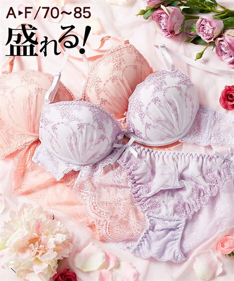 【10日迄 トリンプ 商品15%オフクーポン有☆】 ブラジャーショーツセット (E70/M-F85/LL) ワンカラー 小花刺しゅう ブラジャーショーツ セット ニッセン nissen 盛れる バストアップ かわいい