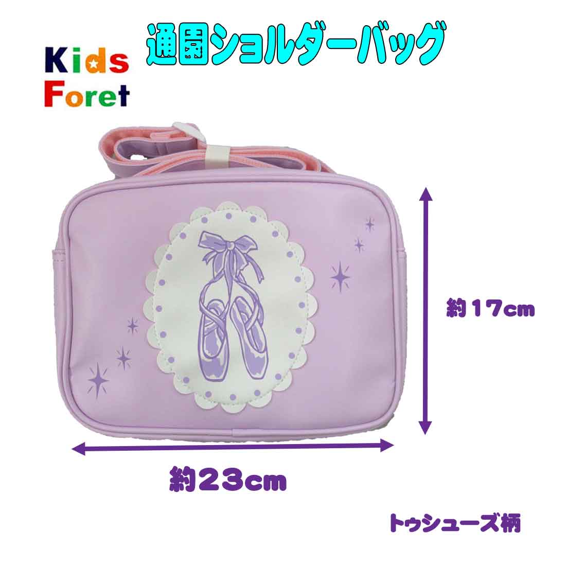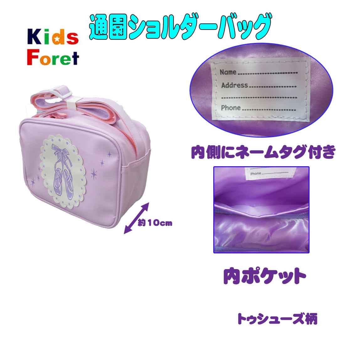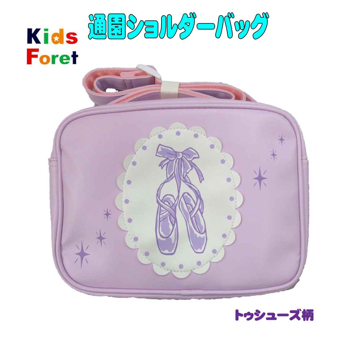 通園ショルダーバッグ パープル×トゥシューズ柄 バレエ マズルカ 幼児用 キッズショルダー 乗り物 通園 入園 入学 新学期準備 保育園