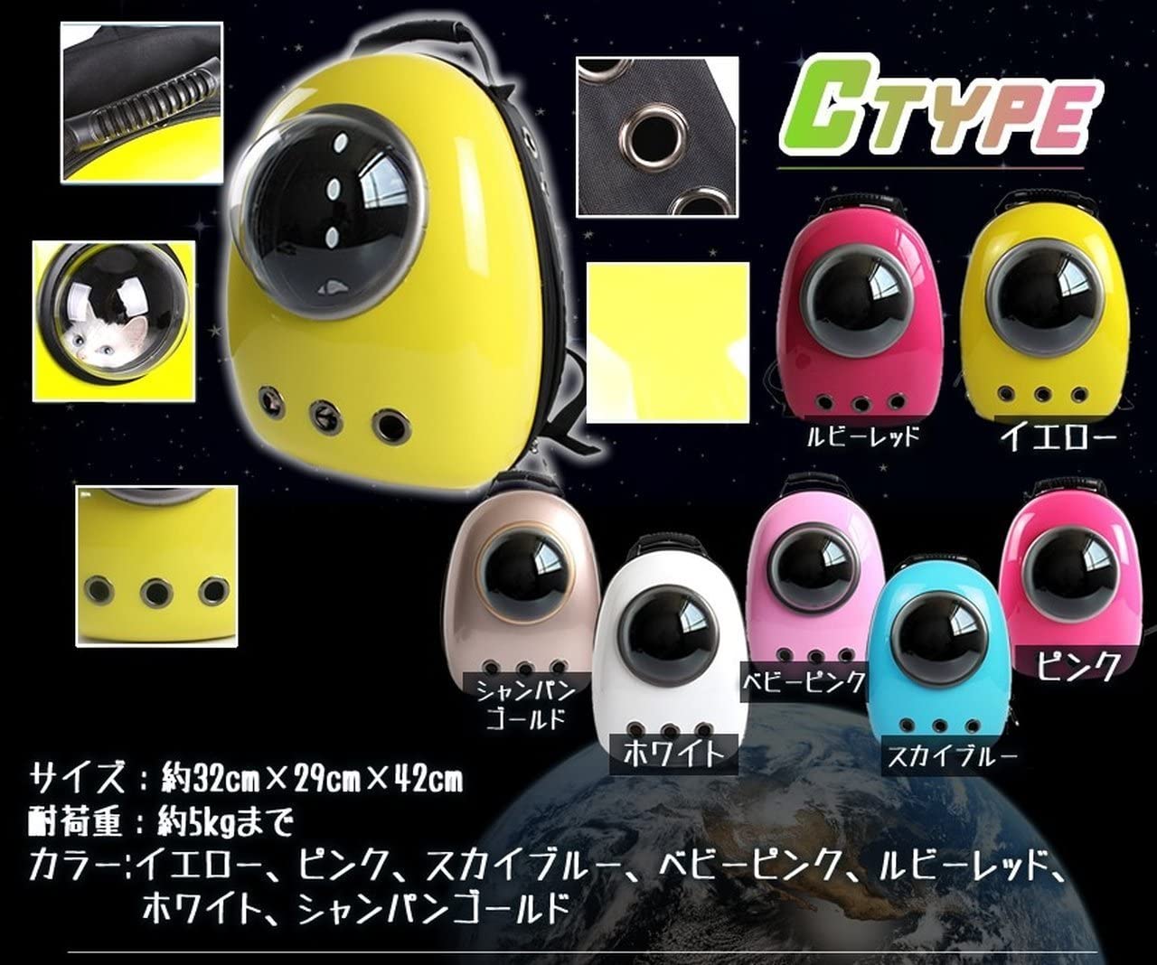 【必ずご確認をお願いいたします】 ※北海道・沖縄県への発送は 【送料無料で配送することができませんので】 行っておりません ご注文いただきましても、キャンセルにて 対応させていただきます 予めご了承ください一緒に宇宙に行っちゃう? 宇宙服のようなカプセル窓を搭載したペットバッグ! 外を覗くと宇宙飛行士に!? バッグ側面には透明な丸い窓があり なかの猫は外を覗くことが出来ます! サイズ:約32cm×29cm×42cm 耐荷重:約5kgまで 一緒に宇宙に行っちゃう? 宇宙服のようなカプセル窓を搭載したペットバッグ! 外を覗くと宇宙飛行士に!? バッグ側面には透明な丸い窓があり、 なかの猫は外を覗くことが出来ます! 飼い主側からも窓から中の愛猫を覗いて、 様子を確認することができます Cタイプ サイズ:約32cm×29cm×42cm 耐荷重:約5kgまで ※本体にはキズ・汚れの付着防止のため、保護フィルムが貼られています。