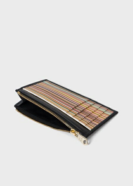 背面にはポール・スミスのデザインシグネチャーのひとつでもある「マルチストライプ」のレザーにエンボス加工を施す事で繊細な表情が生まれた、高級感のある仕上がりのアイテムです。