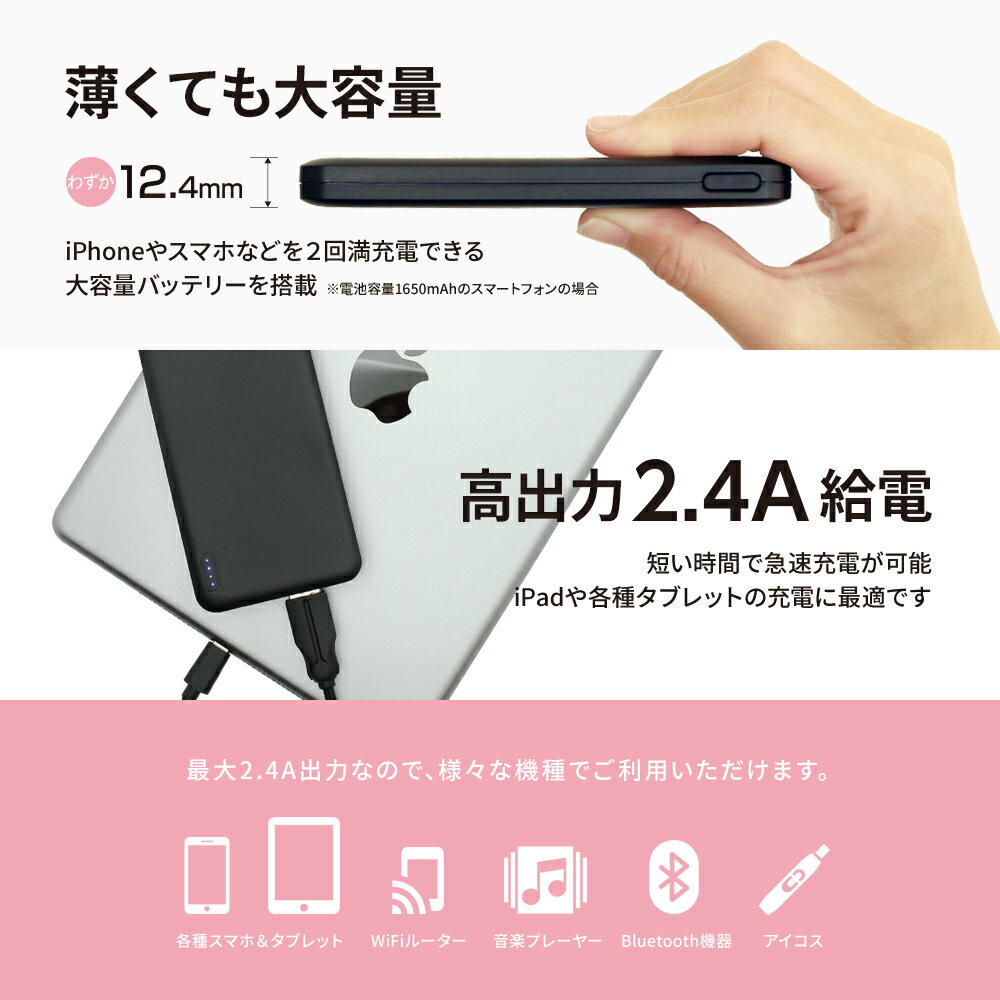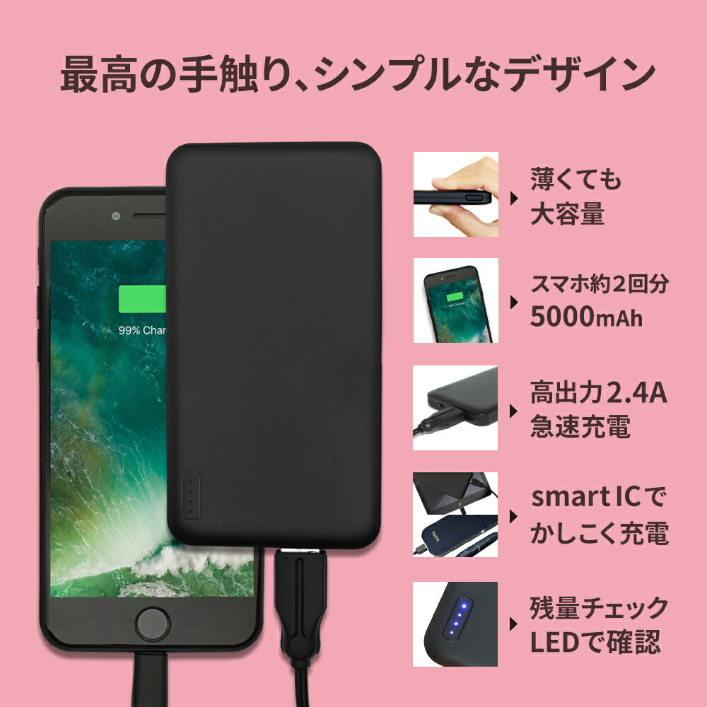 期間限定価格 モバイルバッテリー SmartIC PSE対応 最大2.4A microUSB iPhone Android スマホ充電 急速充電対応 充電器 Wi-Fiルーター、オーディオプレイヤー、ポータブルゲーム機、Bluetoothスピーカー 1年保証 メール便送料無料