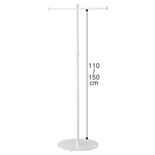 ●サイズ:W60×D60×H150cm●ベース:直径42cm ハンガーパイプ:φ22.2mm 外パイプ:φ25.4mm ハンガー部:L60cm 傾斜角度:30°●素材・加工:スチール製 ホワイトパール焼付塗装●重量:6.8kg●耐荷重:5kg●組立式●10cm間隔で5段階の高さ調節ができます。