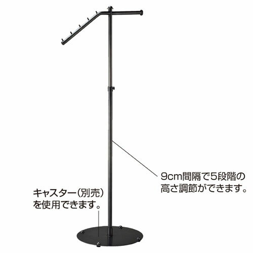 ●サイズ:W60×D60×H150cm●ベース:直径42cm ハンガーパイプ:φ22.2mm 外パイプ:φ25.4mm ハンガー部:L60cm 傾斜角度:30°●素材・加工:スチール製 粉体塗装●重量:6.8kg●耐荷重:5kg●組立式●10cm間隔で5段階の高さ調節ができます。